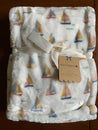 Mon Lapin Velvet Baby Blanket White Sailboats Plush Reverse 30" x 40" New