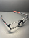 New Authentic Oakley Barspin XS Eyeglasses with Pewter Frames and Red "O" icons Model No OX3001-0247 Authentic Oakley Barspin XS Eyeglasses are in new condition with no defects but there...