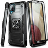 For Samsung Galaxy A12 Case, Shockproof Ring Stand Armor Cover + Tempered Glass / Color Black
