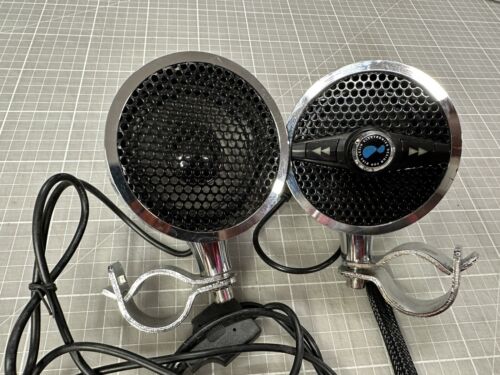 This is a used item with a few scratches (see pictures) but seems to work just fine. I plugged it into the battery tender cord on my Harley, turned it on, connected to Bluetooth and it played music nicely. Appears to have a antenna input for FM radio but I don’t have the antenna. These are around $130 brand new.