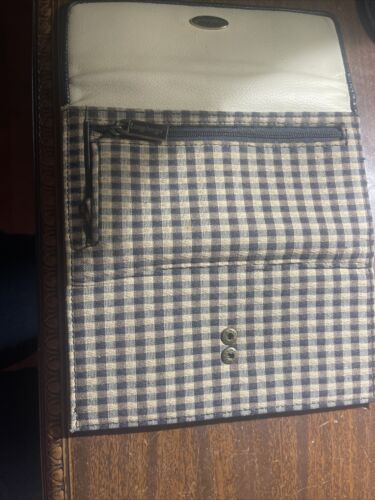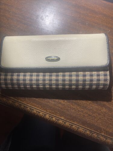 LONGABERGER Homestead BI-FOLD CHECKBOOK WALLET Plaid Fabric Leather Flap.