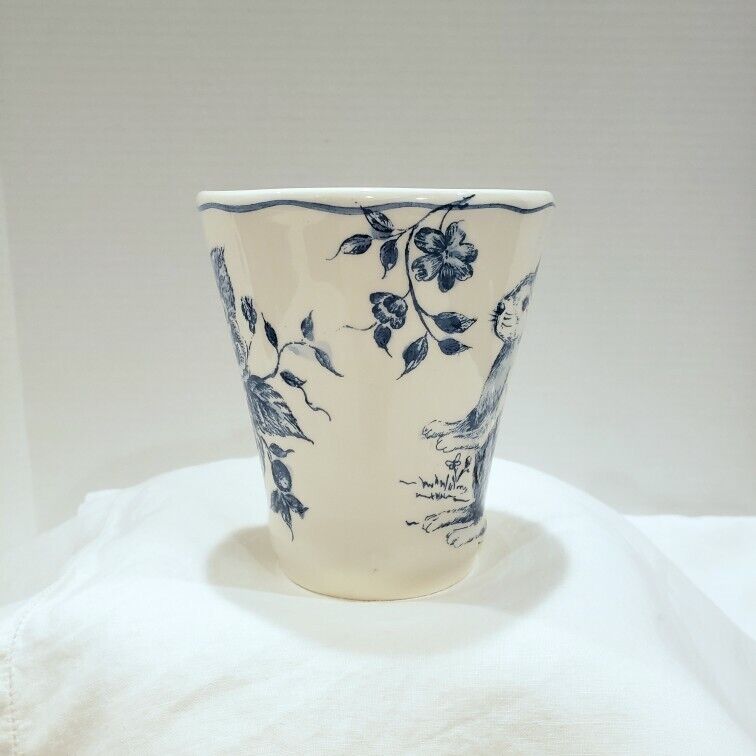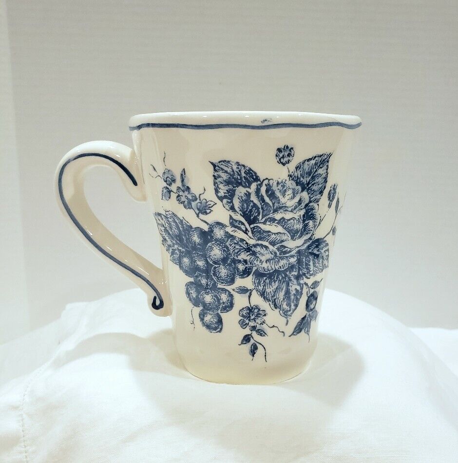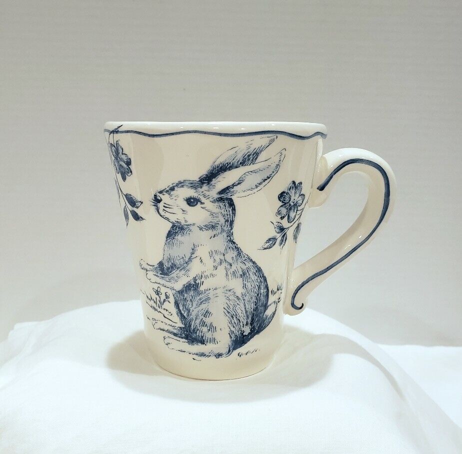 Maxcera Blue & White Toile Bunny Rabbit Rose & Berries Large Coffee Mug 4-5/8"