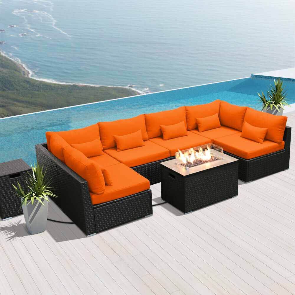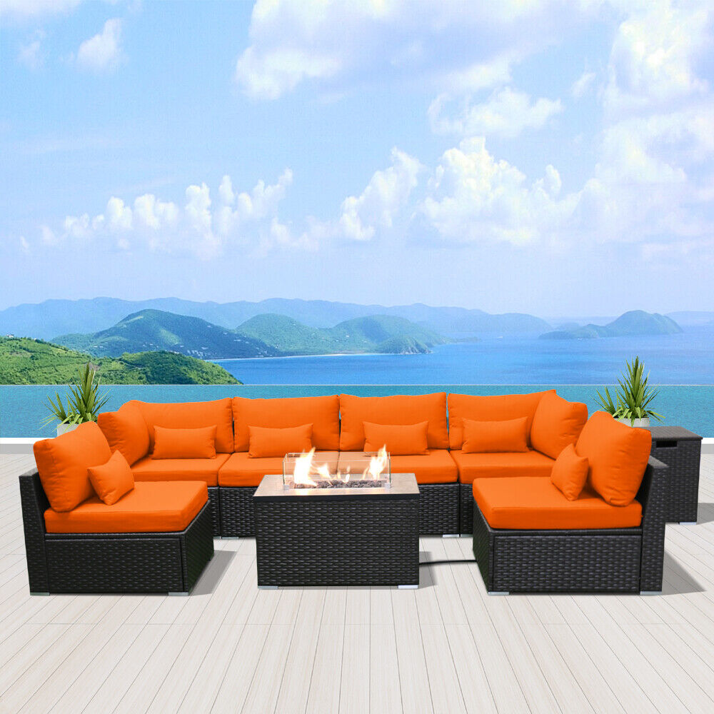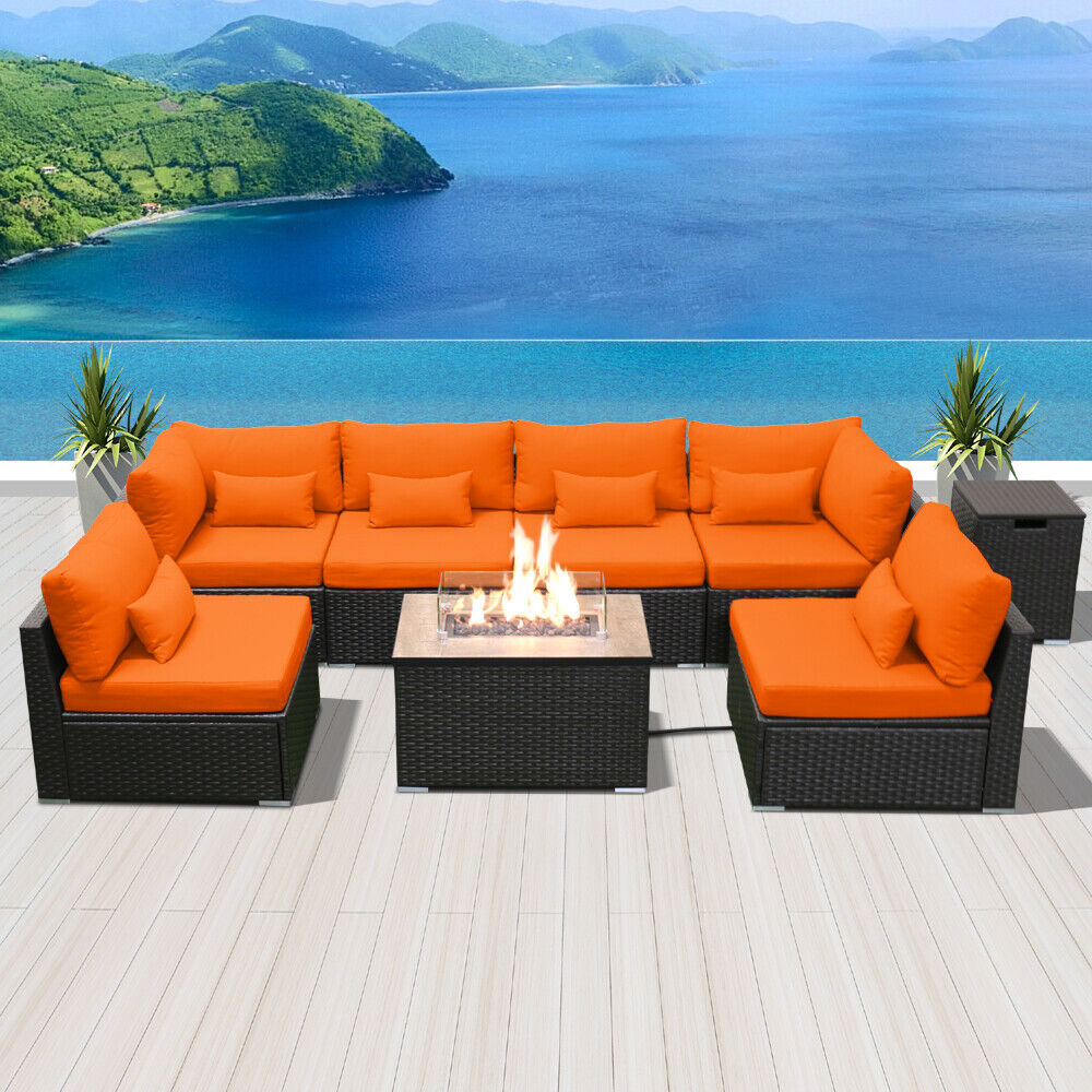 Modenzi G7 Outdoor Wicker Patio Furniture with Rectangular Fire Pit Orange