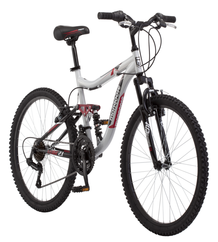 Blaze new trails with the Mongoose Ledge 2.1 Boys' Mountain Bike. The Ledge 2.1 is perfect for the junior adventurer looking for exciting off-road action. 21-speed twist shifters with rear derailleur allow for easy, precision shifting. The aluminum suspension frame and alloy rims lend the 24-inch mountain bike lightweight stability and responsiveness needed for the trail's unexpected bumps and turns. The four-bar linkage, full-suspension frame offers a comfortable, controlled ride while providing a stable base. New trail adventures await with the Ledge 2.1. Become your own legend with Mongoose. Please note: If you select Site to Store delivery, your bike(s) will not be assembled upon pickup.