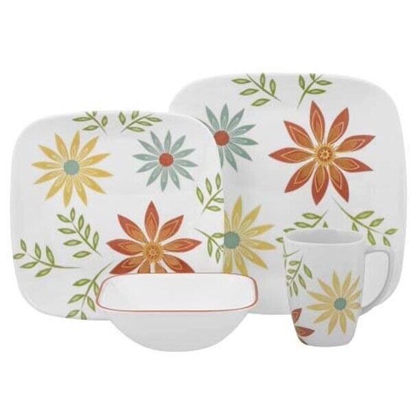 Brand New in Original Box Corelle Happy Days 16 Piece Dinnerware Set Details: Includes: • 10-1/2" Dinner Plates x 4 • 9" Lunch Plates x 4 • 6-1/2" Soup/Cereal Bowl x 4 • 12-oz Porcelain Mugs x 4 • Dishwasher safe for long lasting patterns • Microwave and oven use for versatility • Patterns won't wash, wear or scratch off • Break and chip resistant for carefree durability • Stackability for cupboard space efficiency See Our Store for More Items!
