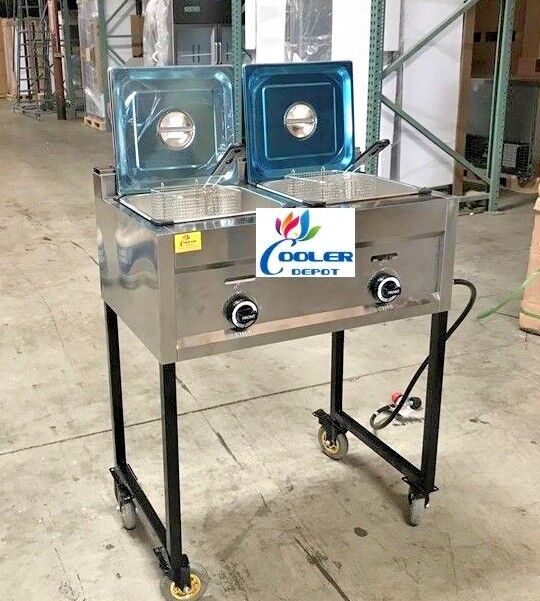 NEW Double Deep Fryer Portable Cart Propane/Gas Use Stainless Steel Model FY20