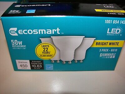 NEW Ecosmart 3 Pack LED 50w GU10 Indoor Light Bulbs Dimmable Bright White 3000K