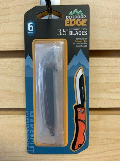 OUTDOOR EDGE RAZOR-LITE (6) REPLACEABLE BLADES RR-6 *KNIFE NOT INCLUDED BRAND NEW IN PACKAGE Full manufacturers warranty Please contact the manufacturer for full details of the warranty VERGONA OUTDOORS LLC IS AN AUTHORIZED OUTDOOR EDGE DEALER Set of 6 replacement blades for any Outdoor Edge Razor Series knife. Specifications: (6) Blades Blade: 3.5" (8.9cm) Steel: Japanese 420J2 Rockwell-C hardness: 57 Return Policy: Free Returns are for