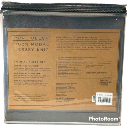 New Pure Beech Jersey Knit 100% Modal Twin XL Sheet Set Charcoal Gray 3 Pc Set