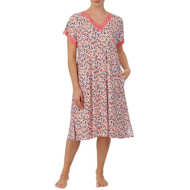New Secret Treasures Women's Floral Gown Nightgown Multicolor many sz. Smoke free and pet free home. 95% polyester 5% spandex Women's V-Neck Gown with Lace Trim Dolman Sleeve with lace trim at sleeve opening Length from HPS: 40" Lingerie lace trim at neckline and sleeve opening Side seam pockets Oversized fit Model is 5'8" Bust 32" Waist 26" Hip 36" she is wearing a size small Machine wash cold Made in Vietnam