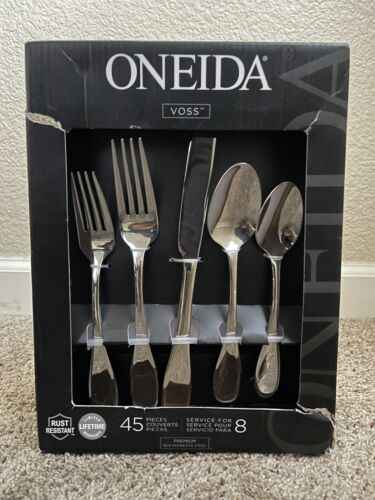 ONEIDA Voss Everyday Flatware Set - Silver, Set of 45 Pieces, Service for 8. Brand new