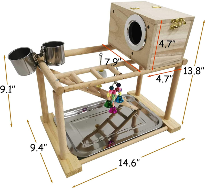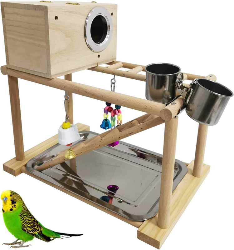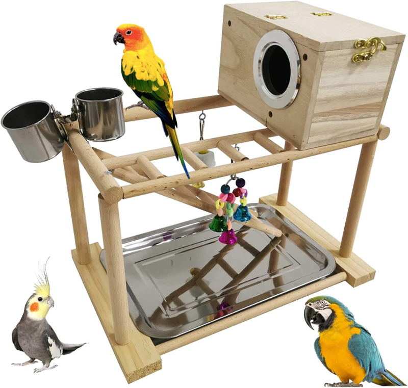 Parrots Playground Bird Playstand Birdcage Play Stand Wood Perch Gym Playpen wit